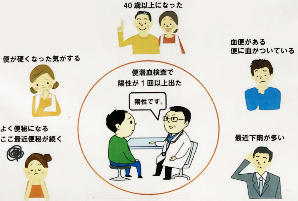 - 便潜血検査で陽性が1回以上出た