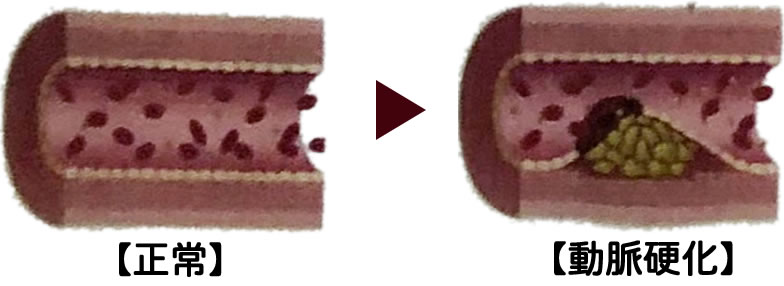 動脈硬化はあまり自覚症状がありません。しかし放置すると、狭心症・心筋梗塞・脳出血・脳梗塞など命にかかわる疾患の原因となります。