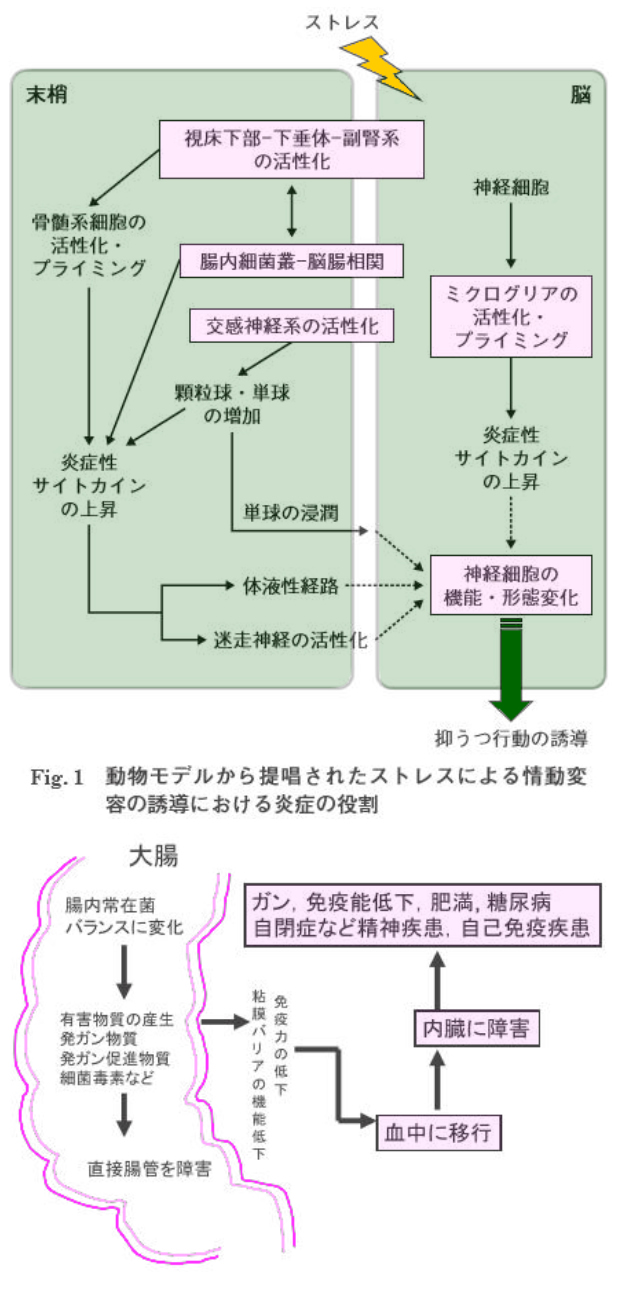 実は、このストレスによる免疫系の活性化には腸内フローラが必須であることが動物実験で分かってきています。